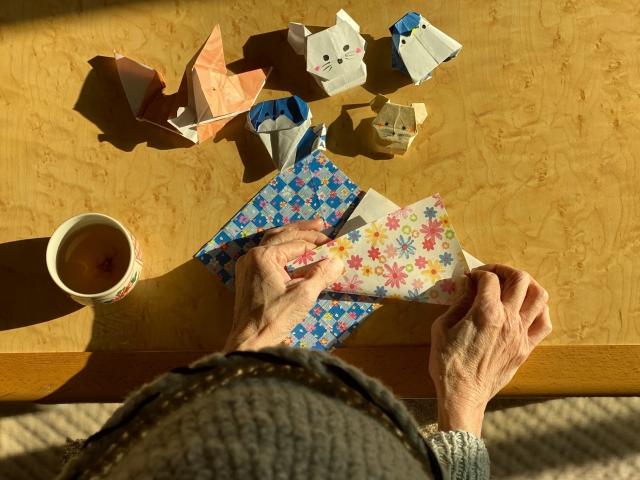 昼食後は口腔ケアや少しまったりタイムでお過ごしいただいて お散歩へでかけたり 作品作りや体操、トレーニングなどのリハビリを行い身体機能の維持・向上に繋がる活動を行います